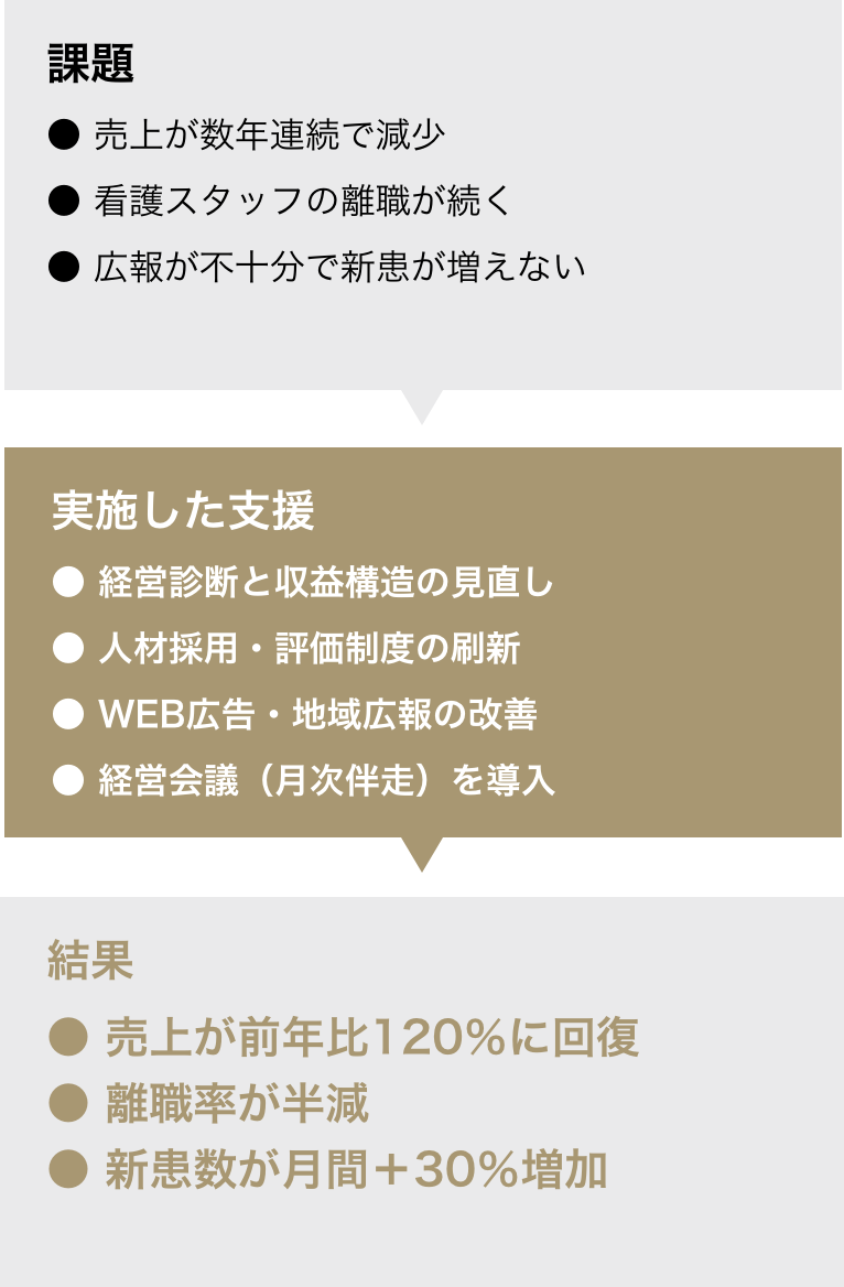 - その他にも、クリニック・医療法人の支援実績多数。詳細はお問い合わせ時にご案内いたします。