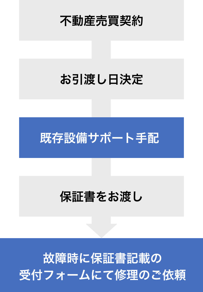 ※保証範囲は住宅に付属した設備 (キッチン・洗面台・お風呂・トイレ 電気のスイッチ照明器具)です。